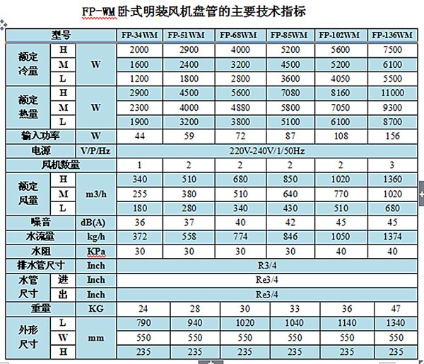 FP-WM臥式明裝風(fēng)機(jī)盤(pán)管: