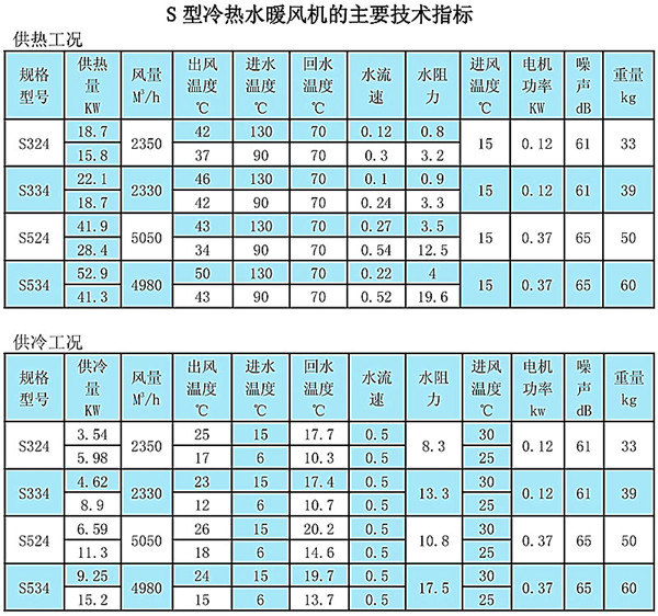 S型冷熱水兩用風機的技術參數(shù)
