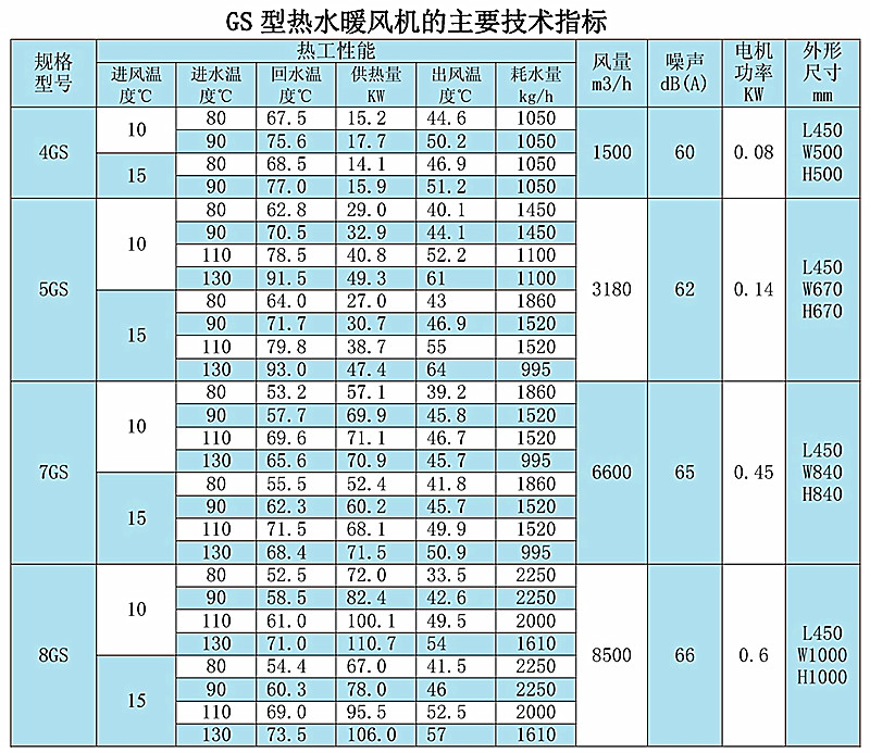 1.GS型熱水暖風(fēng)機(jī)以熱水為熱媒,熱水溫度宜為不低于90℃的熱水。