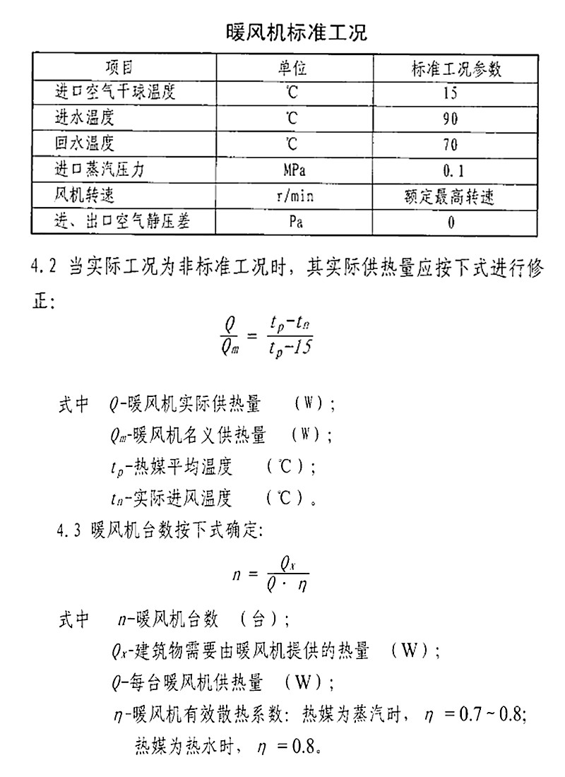 暖風(fēng)機的標準工況和選型計算公式